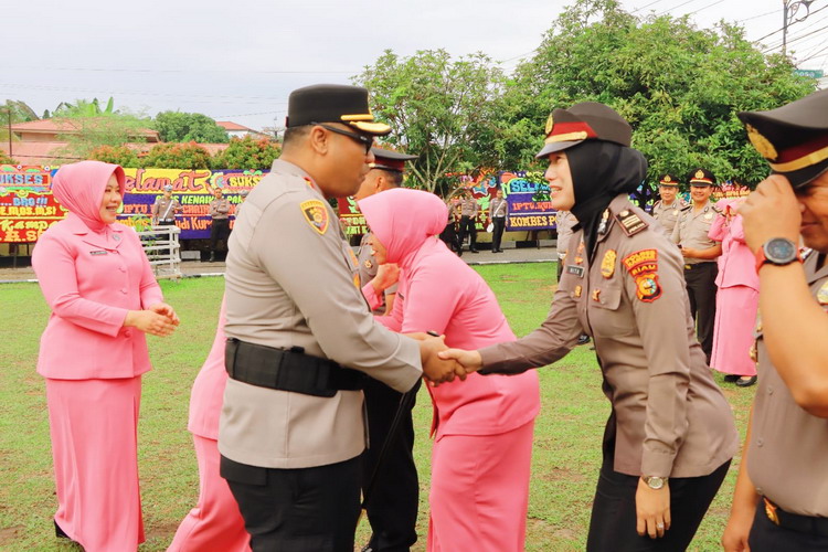 Dalam upacara tersebut, Kapolres Kampar menyematkan tanda pangkat baru kepada perwakilan personel yang naik pangkat, sebagai simbol penghargaan atas dedikasi dan pengabdian mereka kepada institusi Polri.