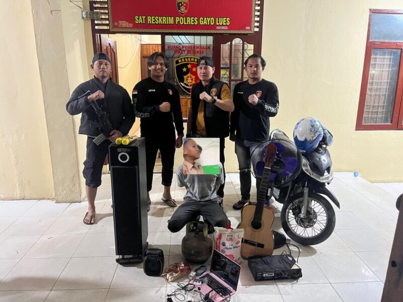 Blangkejeren – Unit Opsnal Satuan Reserse Kriminal (Satreskrim) Polres Gayo Lues berhasil mengungkap dan mengamankan pelaku pencurian yang terjadi di Desa Kutelintang, Kecamatan Blangkejeren, Kabupaten Gayo Lues. Penangkapan dilakukan setelah penyelidikan intensif atas laporan kehilangan sejumlah barang dari sebuah rumah kontrakan yang ditinggal pemiliknya beberapa hari.