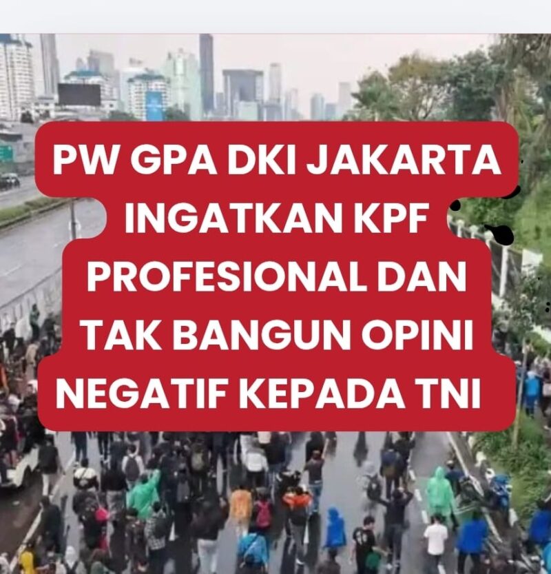 Hal itu disampaikan ketua PW GPA DKI Jakarta dedi siregar menegaskan terkait laporan dari Komisi Pencari Fakta (KPF) yang menelusuri rangkaian peristiwa Agustus 2025, PW GPA meminta agar tidak membangun framing narasi yang seolah-olah menyasar institusi Tentara Nasional Indonesia